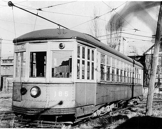 #185 at 18th Street carhouse circa 1935 awaiting shipment to Atlanta